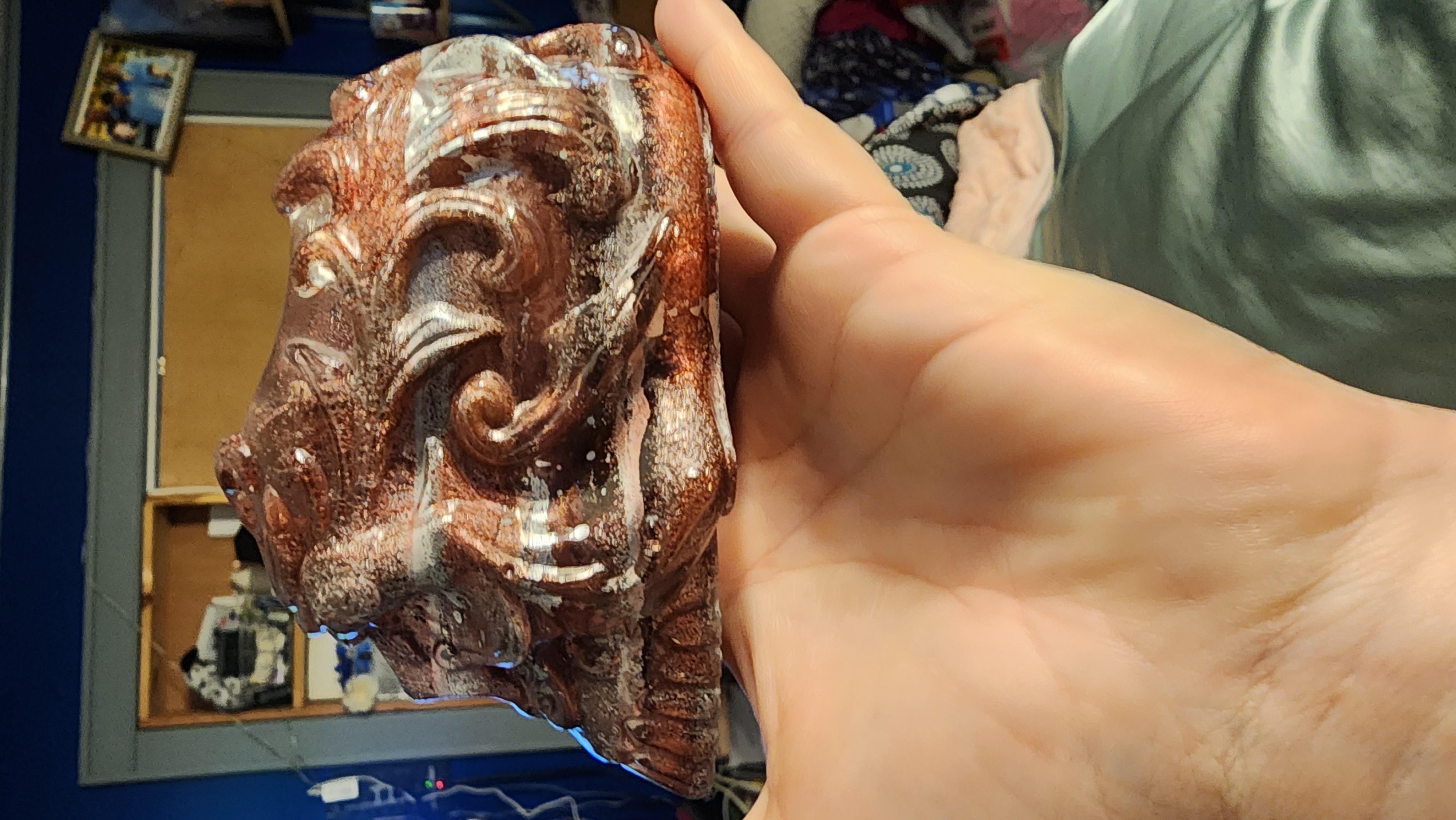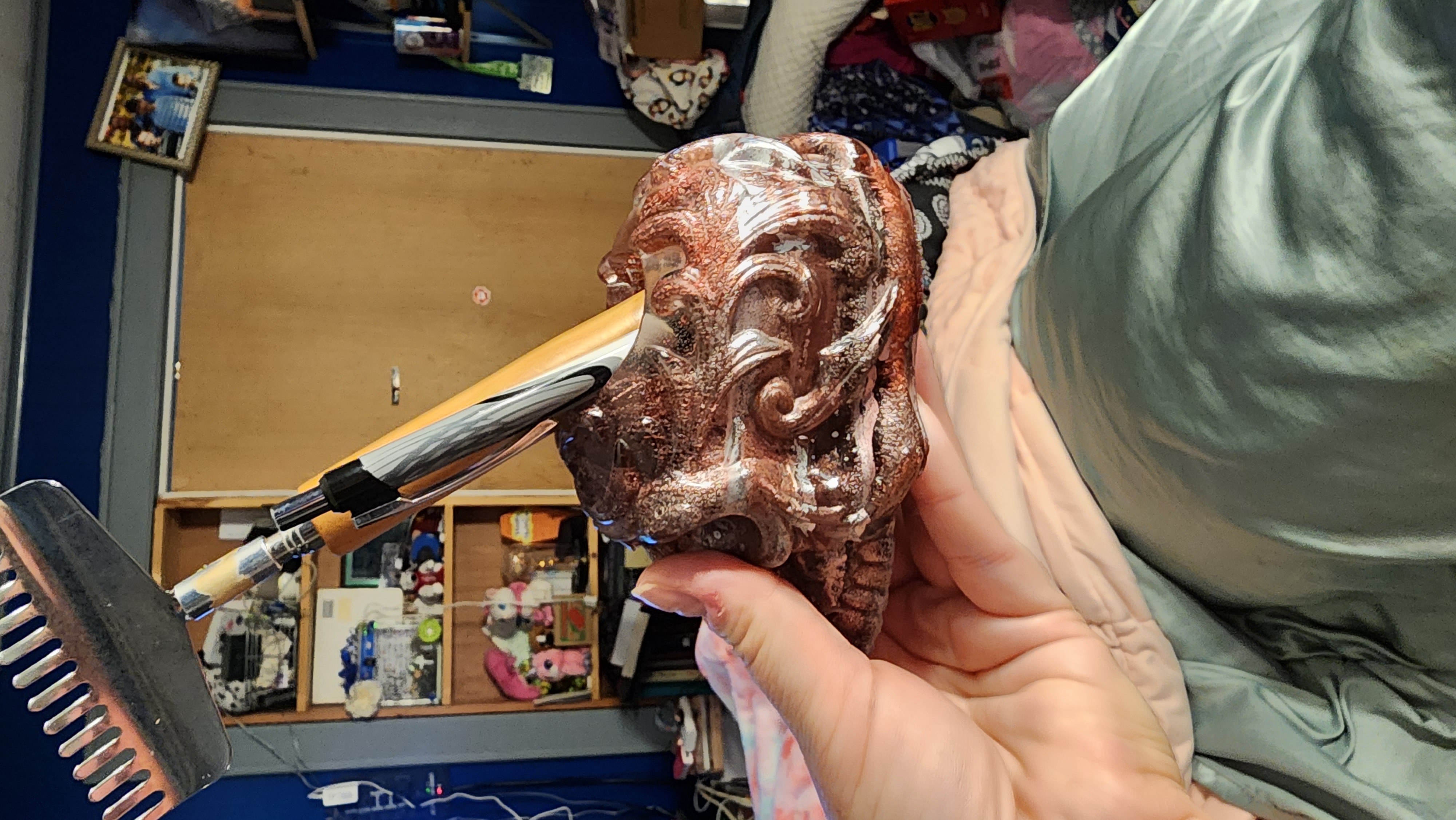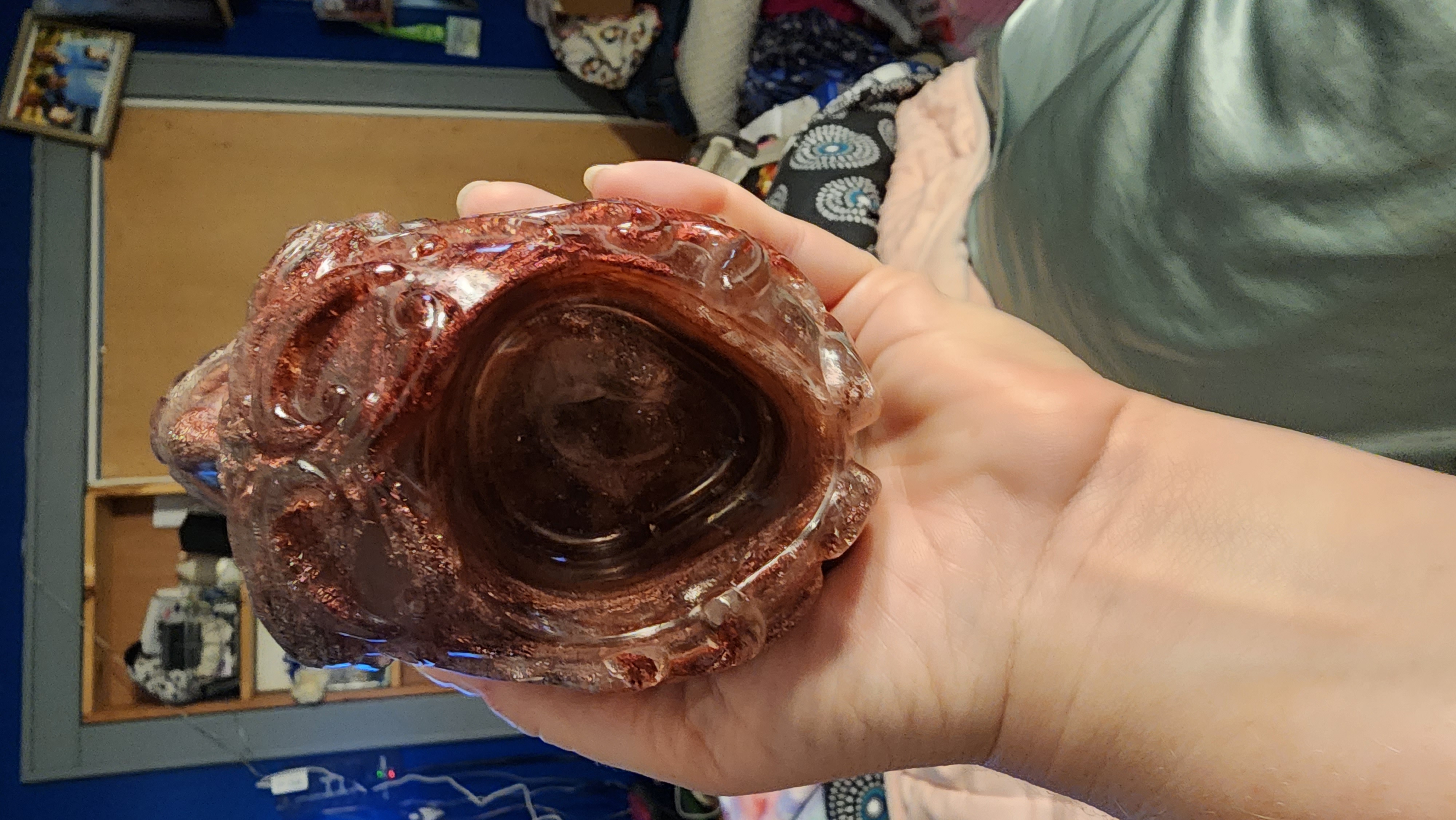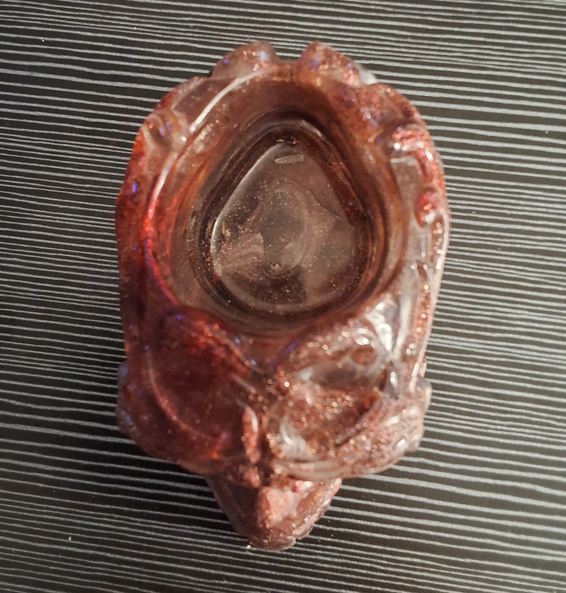 Pinkish-red and silver resin skull that can be used to hold make-up brushes, pencils, pens, or a candle. Perfect for anyone that loves skulls!!! Hand-made and sold as is.