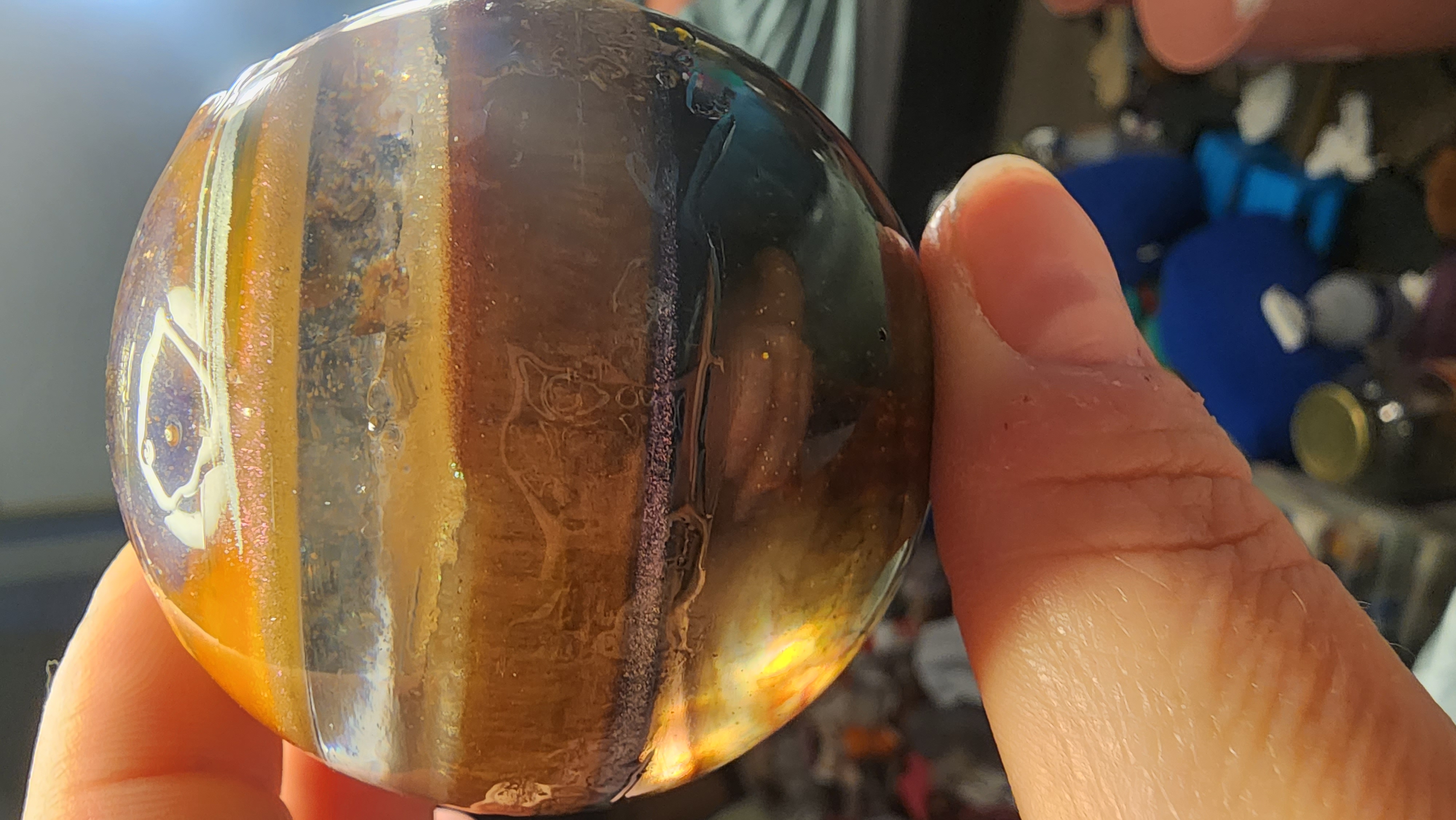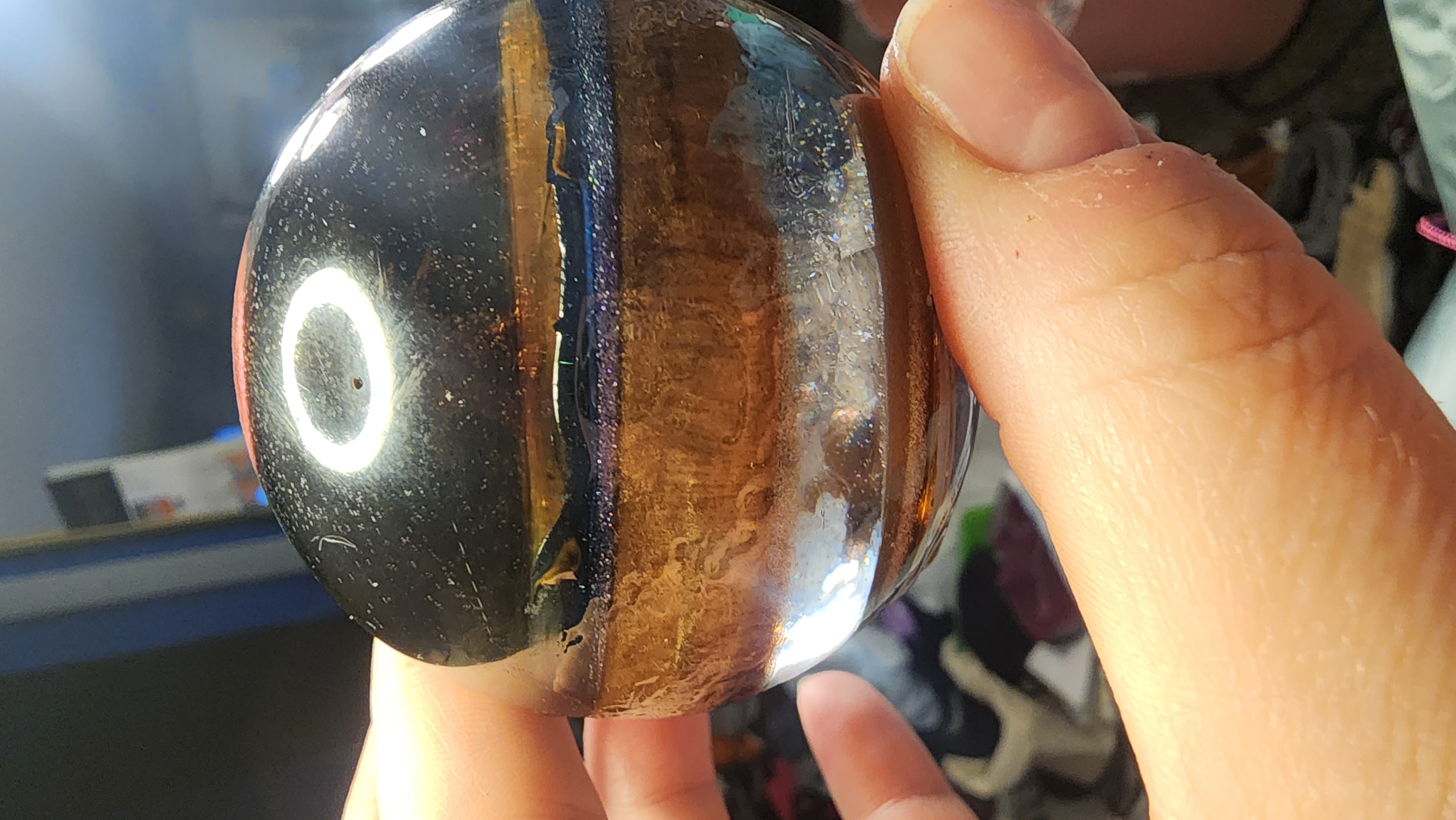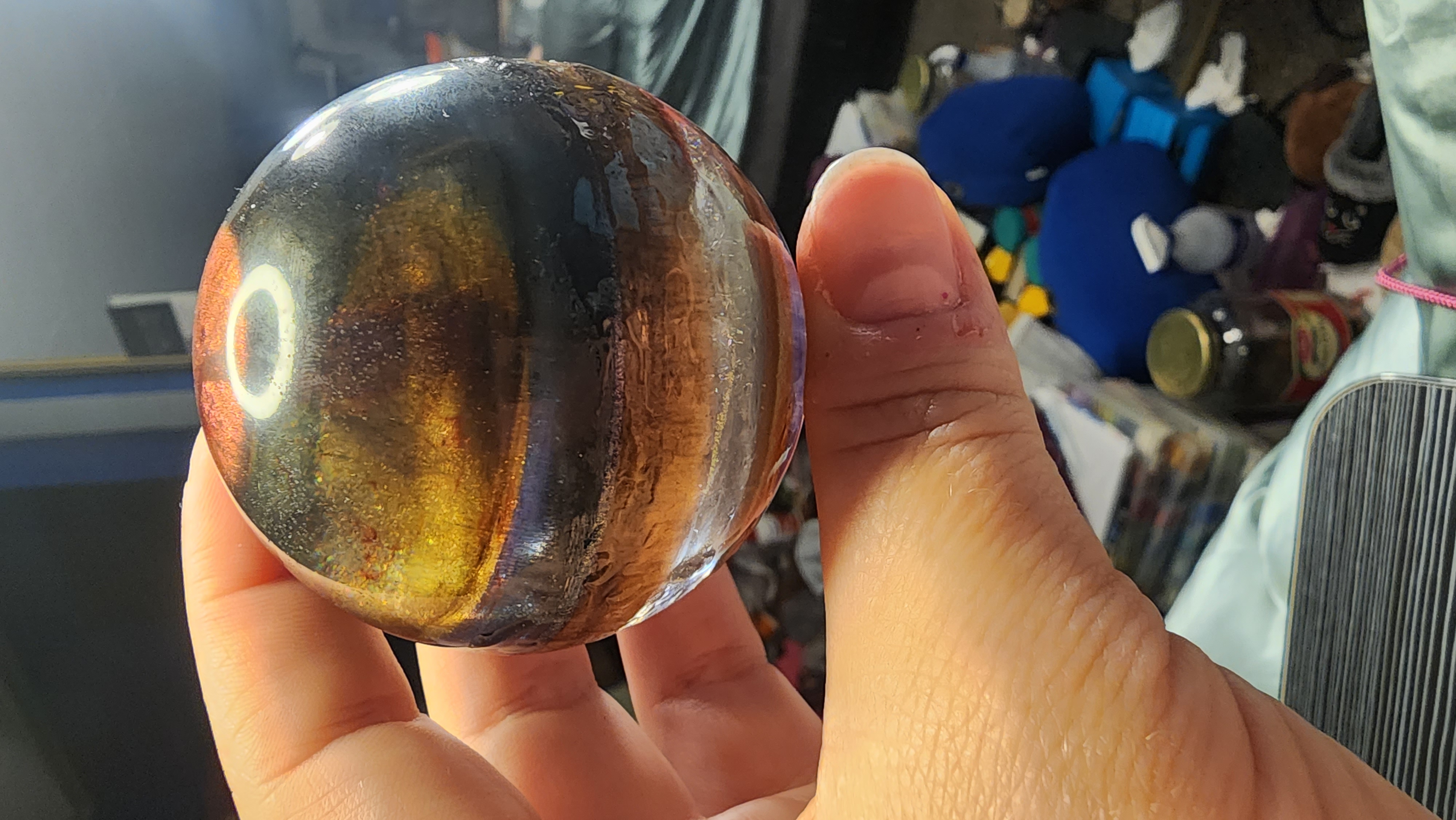 Interesting and unique resin ball/ paperweight. Multicolored and was poured from left over resin from other projects. Pictured with a 20oz soda bottle for scale. Handmade and sold as is.